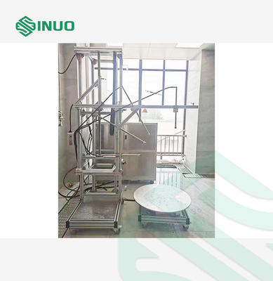 (1) Η κορυφή και οι πέντε επιφάνειες του δείγματος δοκιμής ψεκάζονται με νερό εναλλάξ. (2) Όταν το κέλυφος δοκιμάζεται στις δοκιμές α) και β), η θερμοκρασία του νερού πρέπει να διατηρείται στους (80±5)℃. (3) Για μικρά περιβλήματα (μέγιστο μέγεθος ≤ 250 mm): Το περίβλημα πρέπει να εγκατασταθεί στη συσκευή δοκιμής. Ταχύτητα περιστροφής: (5±1) σ.α.λ. Γωνία ψεκασμού: 0°, 30°, 60°, 90°. Ο χρόνος δοκιμής για κάθε θέση είναι 30 δευτερόλεπτα. (4) Για μεγάλα περιβλήματα (μέγιστο μέγεθος ≥ 250 mm): Το περίβλημα πρέπει να εγκατασταθεί σύμφωνα με την προβλεπόμενη χρήση. Ολόκληρη η εξωτερική επιφάνεια του περιβλήματος θα ψεκαστεί. Κατεύθυνση ψεκασμού: Ψεκασμός από όλες τις κατευθύνσεις για να καλύψει ολόκληρη την επιφάνεια του περιβλήματος. Και η γωνία ψεκασμού πρέπει να είναι όσο το δυνατόν πιο κάθετη στην επιφάνεια ψεκασμού. Η απόσταση μεταξύ του ακροφυσίου και του δείγματος δοκιμής υπό συνθήκες δοκιμής είναι (175±25) mm, τουλάχιστον 3 λεπτά. |