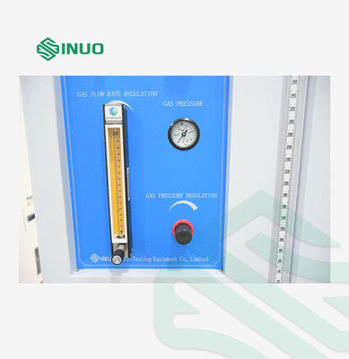 Υιοθετείται αρχικός εισαγόμενος μετρητής ροής, η ροή είναι ρυθμιζόμενη, η ακρίβεια είναι 1%, οι παρακάτω είναι οι τιμές αναφοράς κάθε δοκιμής: UL1581 ισχύς, ύψος φλόγας, χρόνος μέτρησης θερμοκρασίας και ροή: 225W: (16.5mm), 84±2S, 405 ±10mL/min 500W: Εσωτερική φλόγα:40±2mm & Εξωτερική φλόγα:125±10mm, 54±2S, 965 ±30mL/min UL 94 ισχύς, ύψος φλόγας, χρόνος μέτρησης θερμοκρασίας και ροή: 50W: 20±2mm(δεν υπάρχει εσωτερική και εξωτερική φλόγα), 44±2S , 105±5ml/min 500W: Εσωτερική φλόγα:40±2mm & Εξωτερική φλόγα:125±10mm, 54±2S, 965±30ml/min |